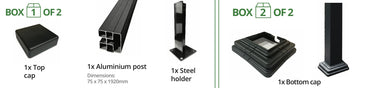 1x Aluminium post - Dimensions: 75 x 75 x 1920mm